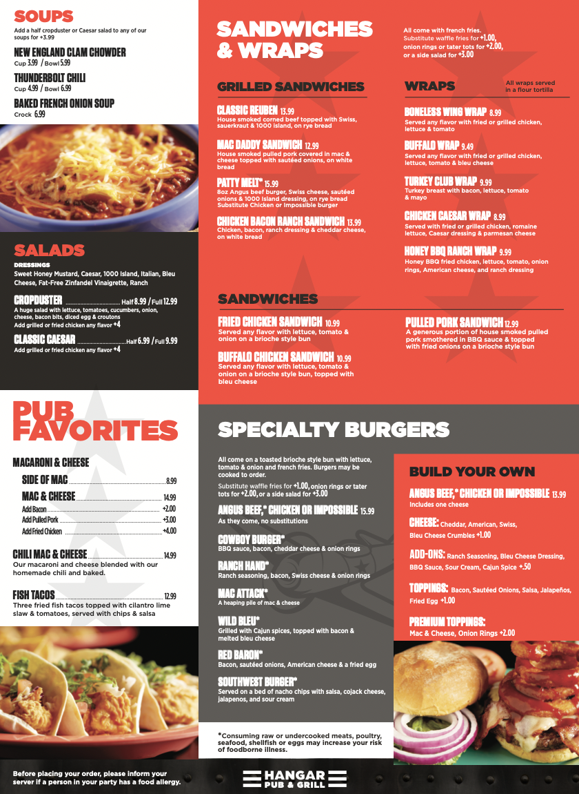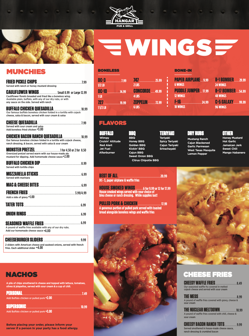 Introducing the Menu at Hangar Pub and Grill of Pittsfield